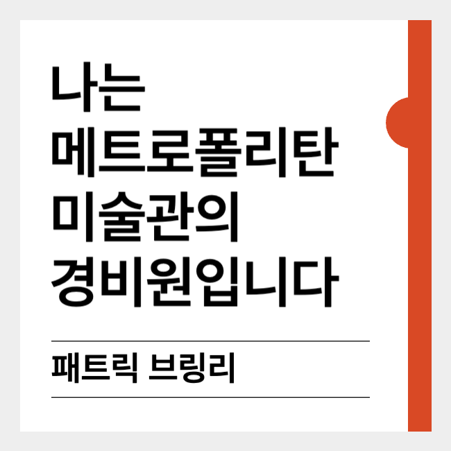 패트릭 브링리는 뉴욕에서 출판 편집자로 일하다가 직장을 그만두고 메트로폴리탄 미술관의 경비원이 되었습니다. 그는 그곳에서 보낸 시간을 통해 삶과 예술을 새롭게 바라보게 됩니다. 이 책에는 그의 사적인 상실과 사유의 과정이 담담하게 녹아 있습니다. 국내에는 웅진지식하우스를 통해 소개되었습니다.